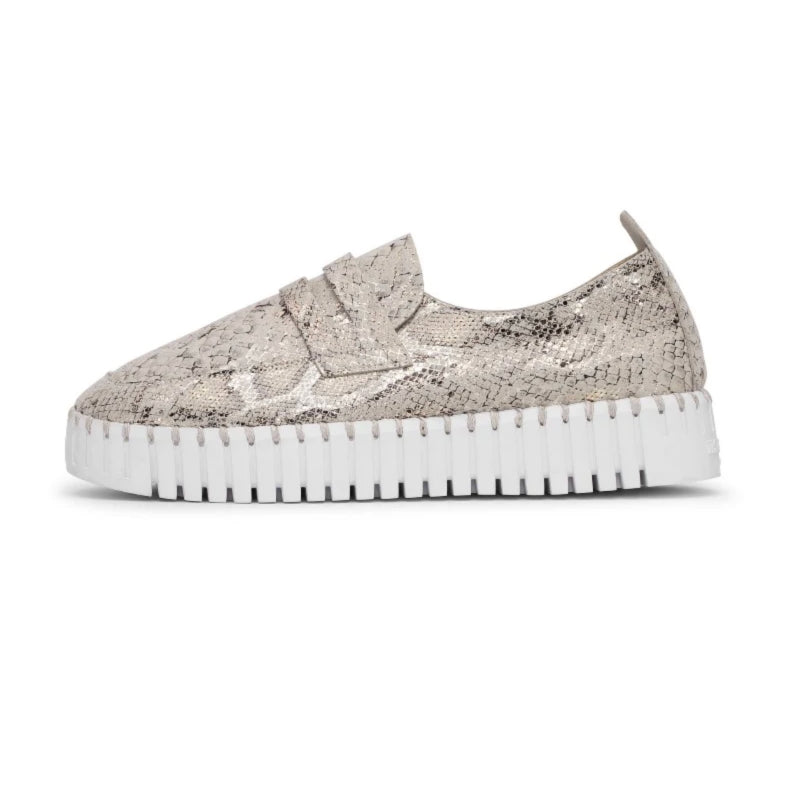 The Ilse Jacobsen Tulip Shoe in Wheat combines timeless style with practical comfort. Featuring a striking embossed snakeskin pattern on the upper paired with sleek patent leather, this versatile flat delivers sophisticated texture that elevates any outfit. Whether you're running errands or heading to casual gatherings, the Tulip's refined design and reliable construction make it the go-to choice for those who refuse to compromise between looking polished and feeling comfortable. A wardrobe essential that works as hard as you do.