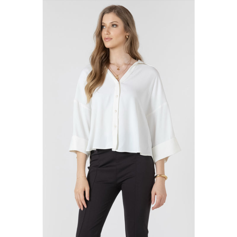 Black Tape Cuffed Button Front Blouse