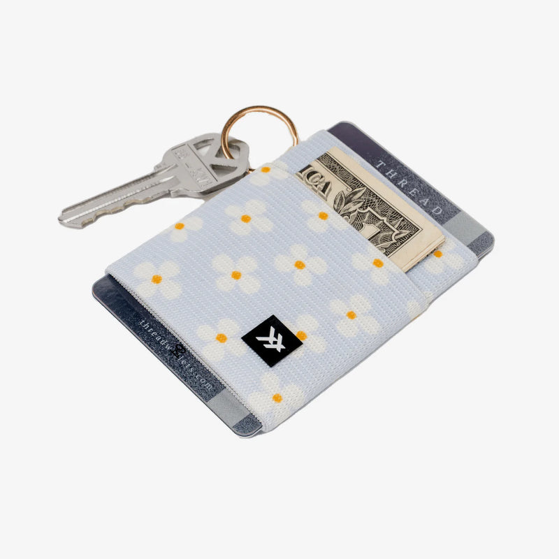 The Thread Luna Elastic Wallet is a durable and convenient solution for holding 2-8 cards and cash. Its tight-knit elastic is both strong and flexible, ensuring your belongings stay secure. The built-in keyring adds an extra level of convenience, perfect for attaching keys or a lanyard. Please note that the elastic may contain latex.